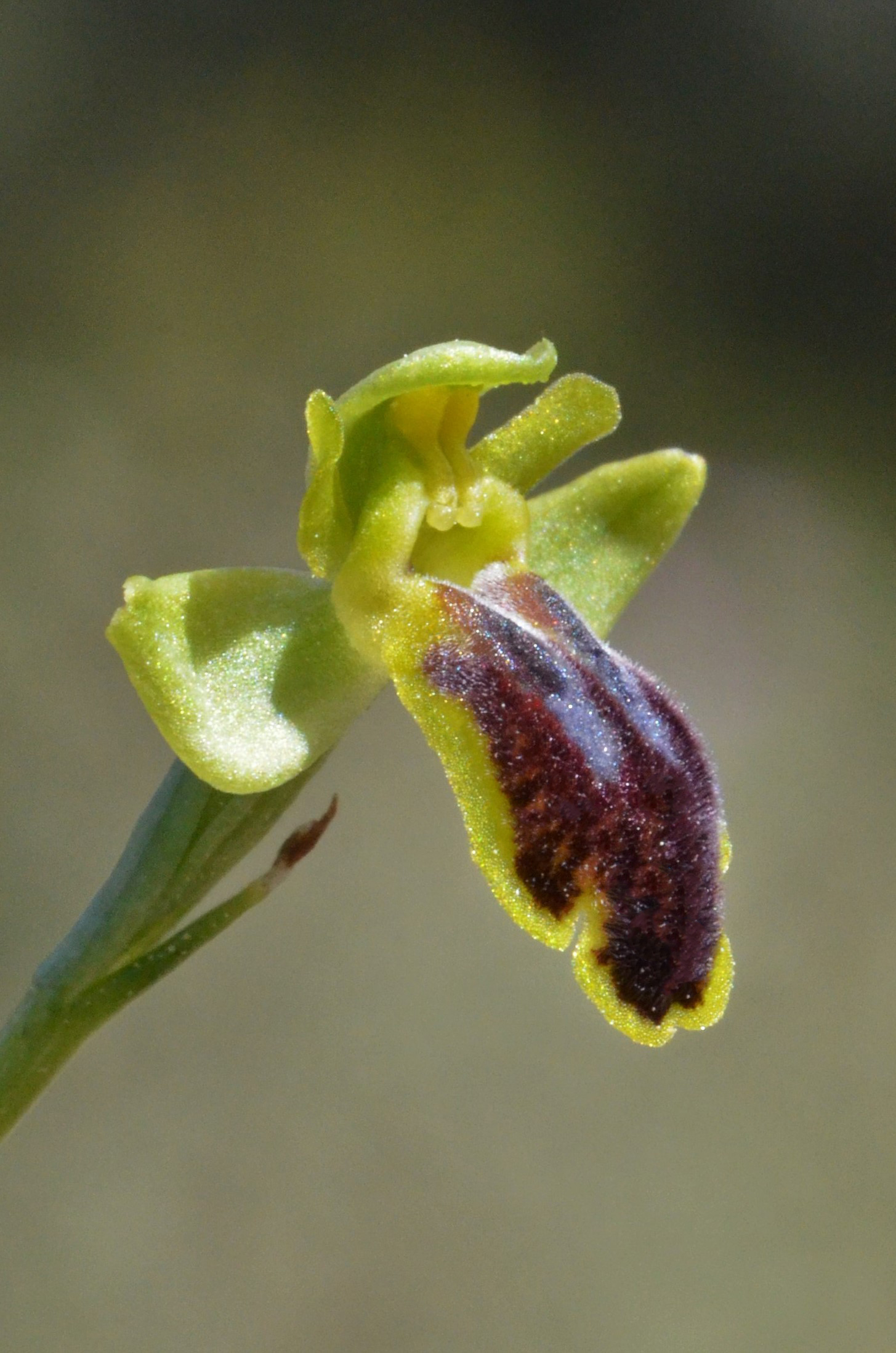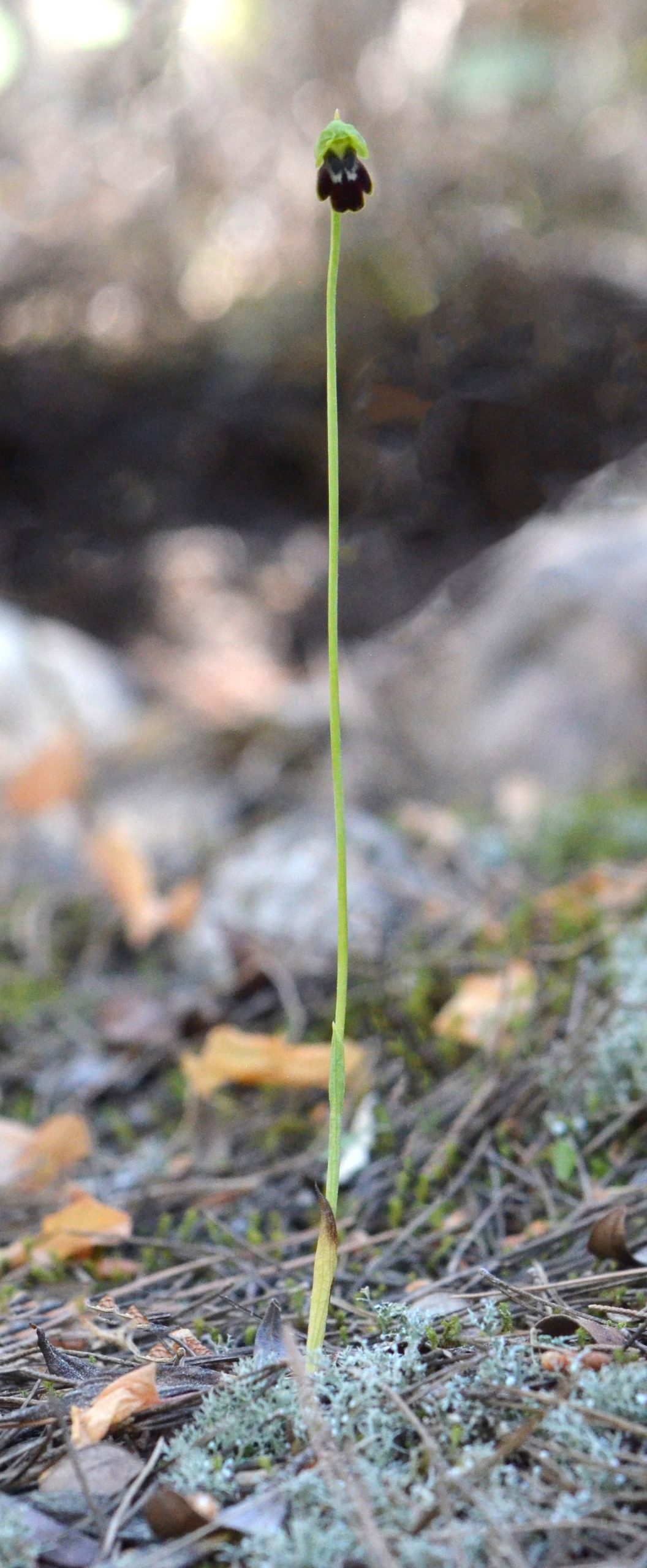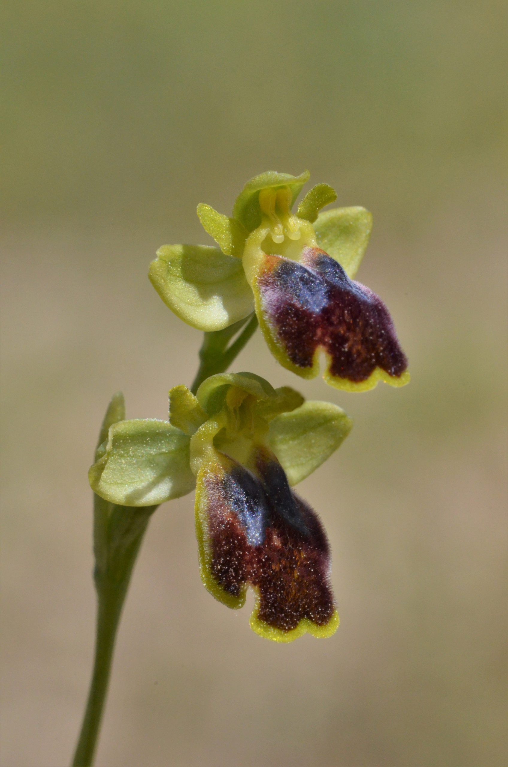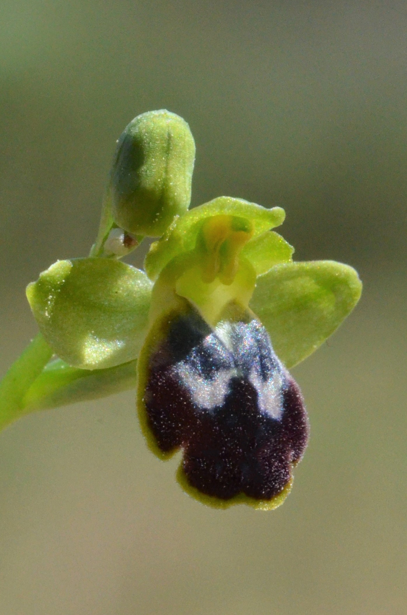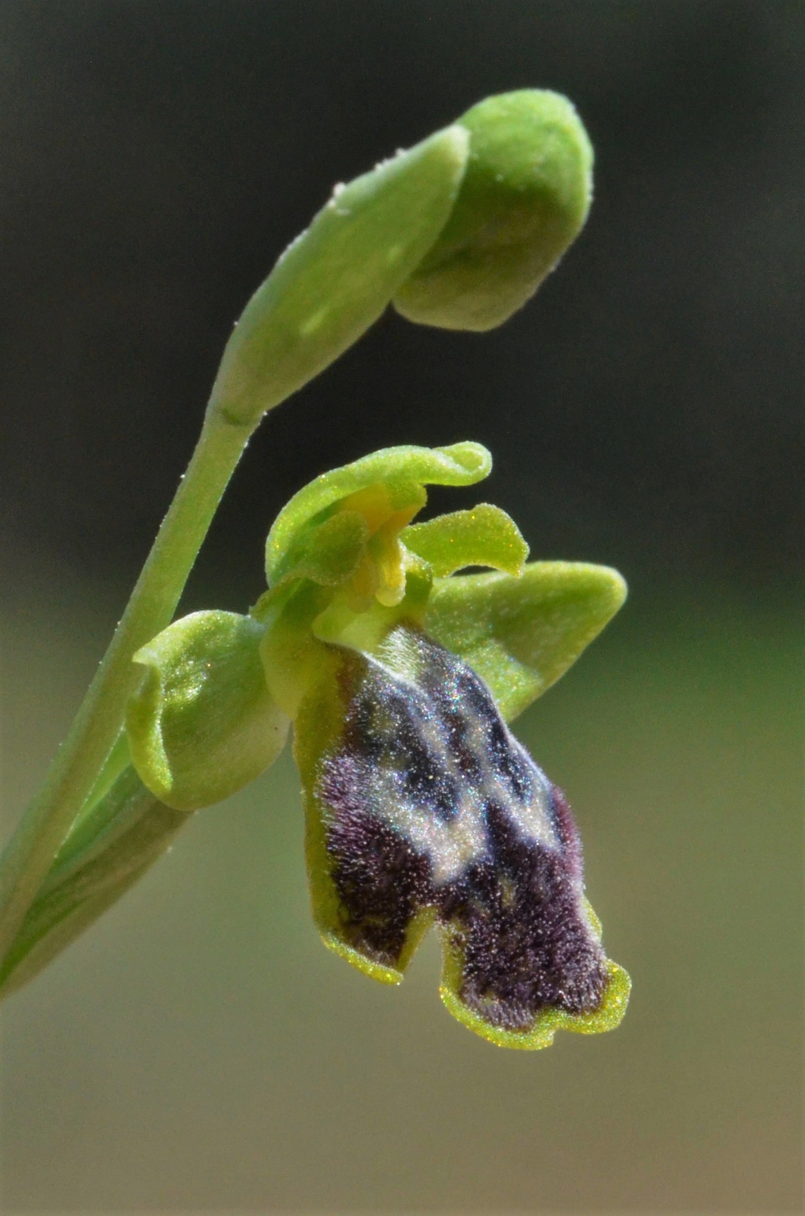 Diese seltene Art ist in verschiedenen Teilen des Mittelmeerraums zu finden und könnte auch auf Ibiza vorkommen. Sie zeichnet sich durch grüne Kelchblätter und eine dunkelbraune, pelzige Lippe mit einer charakteristischen omega-förmigen Zeichnung aus.